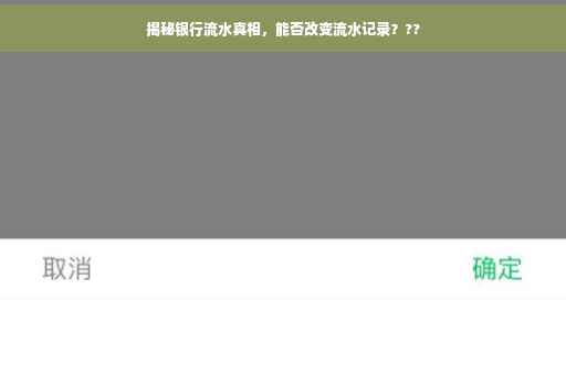 随着金融市场的日益繁荣,银行业务与我们日常生活紧密相连,银行流水作为个人或企业经济活动的重要记录,经常在各种金融业务中起到关键作用,关于银行流水,你是否了解它的真实面貌?在什么情况下可以变更银行流水?本文将为你揭开银行流水的神秘面纱,探讨变更银行流水的可能性及其背后的规则。