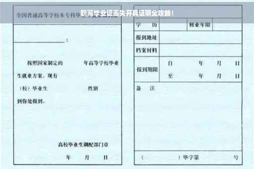 本文旨在为大家提供关于职高毕业证丢失后如何开具证明的全面指南,在面临类似问题时,希望大家能够保持冷静,积极寻找解决方案,确保自己的权益得到保障。