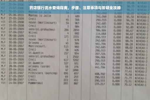 随着社会的快速发展,越来越多的人开始关注个人和企业的财务情况,药店作为经营实体,其银行流水查询变得尤为重要,本文将详细介绍药店银行流水查询的步骤、注意事项以及解决常见问题的策略,帮助读者轻松掌握查询方法,确保财务安全。