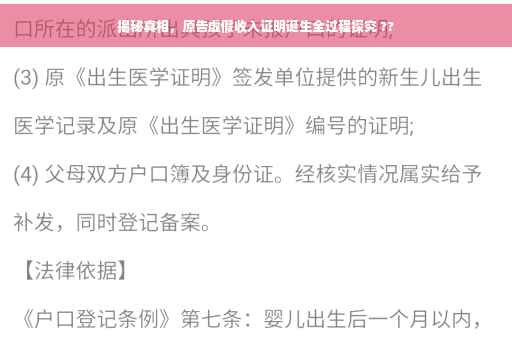 摘要:本文将揭露原告虚假收入证明诞生的真相。文章将探讨虚假收入证明背后的动机和原因,包括可能的利益驱动、法律意识淡薄等因素。还将介绍虚假收入证明的制作过程及其可能带来的后果。提醒公众提高警惕,避免陷入类似的陷阱,共同维护社会公平正义。