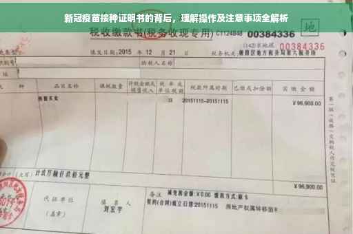 摘要:新冠疫苗接种证明书的背后涉及理解、操作与注意事项。个人需了解疫苗接种证明的重要性,掌握正确的操作方式获取证明,并注意证明的真实性、保存方法及更新信息。理解疫苗接种政策,遵循正确流程,确保个人健康信息准确无误,这是疫苗接种证明的关键。