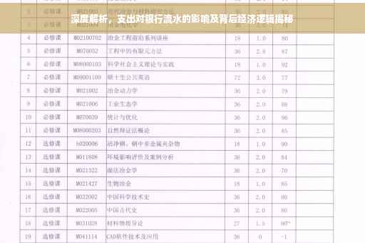 在现代社会,随着金融市场的日益繁荣,银行流水作为个人经济活动的记录,越来越受到人们的关注,银行流水不仅关乎个人信用评估,也直接关系到贷款申请、信用卡办理等金融服务的获取,支出作为银行流水的重要组成部分,其影响不容忽视,本文将深度解析支出影响银行流水的经济逻辑,帮助读者更好地理解这一金融现象。