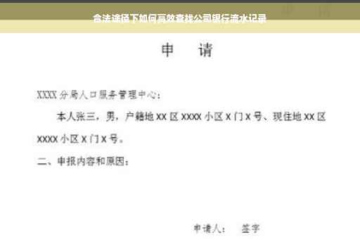 本文详细介绍了如何合法有效地查找公司银行流水记录,包括准备工作、查询流程、注意事项及相关法律规定,希望读者在了解这些内容后,能更好地完成查找公司银行流水记录的工作,保障企业的财务安全,提醒大家在操作过程中要遵守相关法律法规,确保操作的合法合规,如有疑虑,可咨询专业律师或财务人员的意见,以确保操作的正确性。
