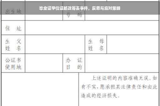 一起关于毕业证和学位证通过邮政寄递过程中丢失的事件引起了广泛关注,本事件不仅给学生本人带来了极大的困扰和焦虑,也对整个邮政寄递行业提出了严峻的挑战,作为自媒体作者,我将对此事件进行深入剖析,并探讨其背后的原因及应对策略。