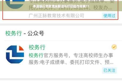 随着金融行业的蓬勃发展,贷款已成为满足人们多样化需求的重要途径之一,在银行审核贷款的过程中,贷款流水作为评估个人信用状况的关键参考,其打印流程和注意事项备受关注,本文将详细介绍本溪银行打印贷款流水的过程,帮助广大客户解决操作中可能遇到的问题,以便更好地了解并顺利获取贷款流水。