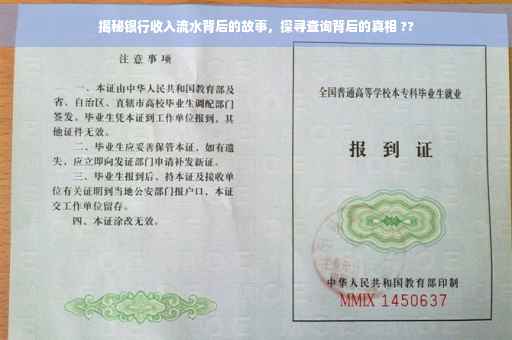 摘要:,,本文揭示了银行查询收入流水背后的故事。通过深入了解,我们发现银行查询收入流水不仅是客户办理贷款、信用卡等业务的必要步骤,也是银行评估客户信用状况的重要依据。这一过程也涉及到客户隐私保护和信息安全等问题。了解这些背后的故事,有助于我们更好地认识银行业务的运营,同时也提醒我们在处理个人金融信息时需保持警惕。