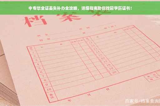 生活中的各类证件,犹如通往不同门户的钥匙,而中专毕业证便是我们迈向社会的重要凭证之一,有时因种种原因,我们可能会遗失这枚至关重要的钥匙,一旦中专毕业证不慎丢失,该如何找回这把钥匙呢?本文将为读者提供一份详尽的指南,帮助大家了解中专毕业证丢失后的补证流程。
