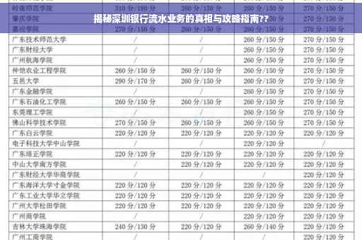 摘要:本文将揭示深圳银行流水业务的真相与攻略。文章将介绍深圳哪些机构提供银行流水业务,并探讨银行流水业务的具体操作方式及其重要性。还将提供一些建议和注意事项,以帮助读者更好地理解和处理银行流水业务。