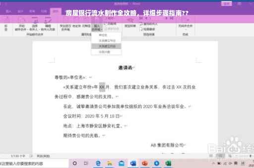 在当今社会,无论是购房贷款、申请信用卡还是办理其他金融业务,房屋银行流水都是一项重要的证明材料,它反映了你的收入状况和财务状况,对于银行评估你的还款能力和信用状况至关重要,了解如何制作房屋银行流水是十分必要的,本文将详细介绍房屋银行流水的制作过程,帮助你轻松应对各种金融场景。