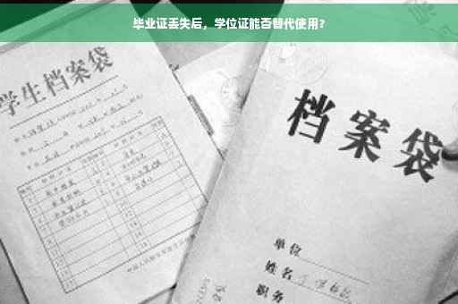 毕业证丢失后,学位证不能替代使用。毕业证是证明学历和毕业资格的重要证件,而学位证是证明学术水平和获得学位的证书。两者虽然都是证明个人学术成就的文件,但功能和作用不同,不能相互替代。如果毕业证丢失,应该尽快进行补办,以确保个人学历和毕业资格的合法性和有效性。