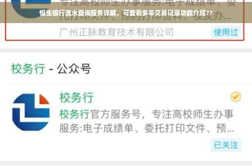 问:恒生银行的流水记录可以查询到几年前的交易?答:通常情况下,恒生银行的流水记录可以查询到近一年的交易记录,对于更早期的记录,可能会受到一些限制,建议定期查询账户流水,以便及时了解账户动态,问:在查询流水记录时需要注意什么?答:在查询流水记录时,客户需注意保护个人信息,避免泄露银行卡号、密码等重要信息,应及时核对交易明细,如发现异常,应立即联系银行处理,问:如何有效利用恒生银行的流水查询服务?答:建议客户定期查询账户流水记录,以便及时发现异常交易,保障资金安全,对于查询到的流水记录,客户应妥善保管,以备不时之需,在申请贷款、办理信用卡或其他金融业务时,可能需要提供近期的流水记录,问:如果我对流水记录有疑问怎么办?答:如果客户对流水记录有疑问,应立即联系恒生银行客服或前往任意一家柜台进行咨询和核实,银行将为客户提供专业的解答和帮助,通过本文的介绍和解答常见问题的方式可以帮助大家更好地了解恒生银行的流水查询服务并有效利用它保障个人资金安全,同时也要注意保护个人信息及时核对交易明细避免出现不必要的损失。