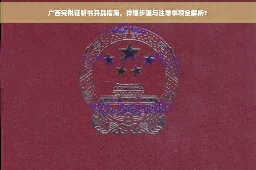 在广西,完税证明书是证明个人或企业已缴纳税款的重要凭证,对于个人而言,完税证明可以用于办理贷款、签证、落户等事务;对于企业来说,完税证明则是展示企业经营状况、信誉度的重要参考,在广西如何开具完税证明书呢?本文将为您详细介绍开具完税证明书的步骤及注意事项。