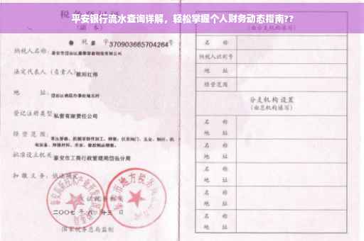 通过本文的介绍,您已经了解了如何查询平安银行流水的方法,无论您是通过网上银行、手机银行APP还是前往银行柜台,都可以轻松查询到自己的流水信息,希望本文能够帮助您更好地掌握个人财务动态,为您的生活带来便利,也请您注意保护个人隐私和资金安全,确保查询操作的安全性,如有任何疑问,请及时联系银行客服或寻求专业人士的帮助。