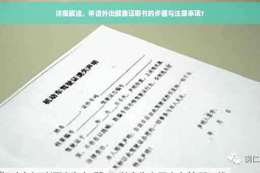 申请外出健康证明书是跨地区活动的重要准备工作之一,本文提供的全面指南希望能帮助您顺利完成申请,确保您的出行顺利,在申请过程中,如有任何问题,请及时咨询医疗机构。