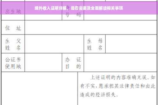 境外收入是否需要开具证明进行全面解读。对于境外收入,根据相关法规,个人或企业可能需要提供证明文件以证明其收入来源的合法性。这些证明文件可能包括银行对账单、收入证明、税务证明等。具体要求因国家或地区而异,建议咨询当地相关部门了解详细规定。境外收入的税务处理也需特别注意,确保合规申报并遵守相关税法。