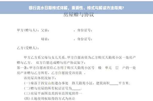 在当今数字化时代,银行流水作为个人和企业财务记录的重要组成部分,其重要性日益凸显,无论是办理贷款、信用卡申请还是财务审计,银行流水都是评估个人或企业信用状况的重要依据之一,而日期格式作为银行流水记录中的关键元素,其规范性和准确性直接关系到财务数据的真实性和可信度,本文将详细介绍银行流水的日期格式,帮助大家更好地理解和应用。