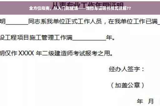 在实际应用中,还需要根据具体情况进行灵活处理,确保证明书的真实性、准确性和完整性,撰写维修车证明书是一项重要的工作,需要认真对待,通过本文的介绍,希望读者能够了解维修车证明书的格式及撰写要点,为车辆的维修保养工作提供有力的支持。