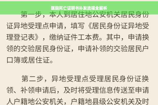 在医院日常工作中,死亡证明书是一项非常重要的文件,用于证明患者的死亡事实及相关情况,由于各种原因,有时患者家属可能需要补发这份证明书,本文将详细介绍医院死亡证明书的补发流程,以帮助患者家属了解并顺利完成补发手续。