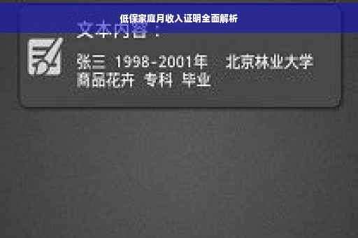 摘要:本文将详细介绍低保家庭的月收入证明相关事项。内容涵盖低保家庭月收入证明的概念、作用,以及申请和办理流程。旨在帮助读者了解如何正确获取和提供低保家庭月收入证明,以保障低保家庭的合法权益。通过本文,读者可以了解到月收入证明在低保申请中的重要性,以及申请过程中需要注意的事项。