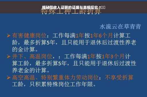 摘要:假收入证明涉及多种证据,揭示真相至关重要。证据包括但不限于伪造工资单、银行流水记录、雇主证明信等。这些证据通常缺乏真实性和合法性,可能涉及虚假签名、错误日期等细节问题。揭露假收入证明真相有助于维护社会公平正义,保障个人权益不受侵害。建议公众保持警惕,避免陷入相关风险。