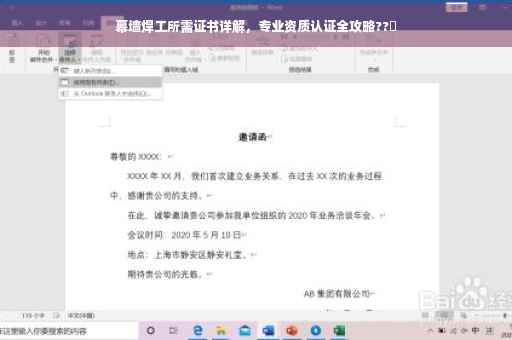 4、其他相关证书:根据具体的工作需求和地区规定,幕墙焊工可能还需要建筑类企业颁发的内部培训证书、职业健康证明等。