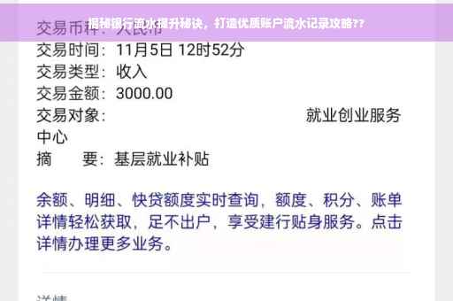 银行流水是指个人或企业在银行交易过程中产生的资金流入和流出记录,它是评估个人财务状况和信用状况的重要依据之一,在申请贷款、信用卡等金融产品时,银行流水的高低往往决定您的申请是否能顺利通过,因此了解如何提升银行流水至关重要。
