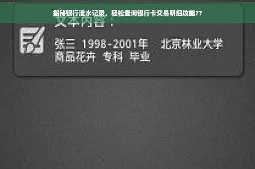 在现代社会,银行业务与我们日常生活息息相关,其中银行卡更是我们日常生活中不可或缺的一部分,随着消费方式的多样化,银行卡交易频繁,我们有时需要查询银行卡的流水记录,以核对交易明细、办理贷款或进行财务规划等,本文将详细介绍如何轻松查询银行卡流水记录,助你更好地管理个人财务。