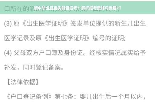 就是关于“初中毕业证丢了还能报考吗”的详细解析,希望对你有所帮助,如果你还有其他问题,欢迎随时向我咨询。
