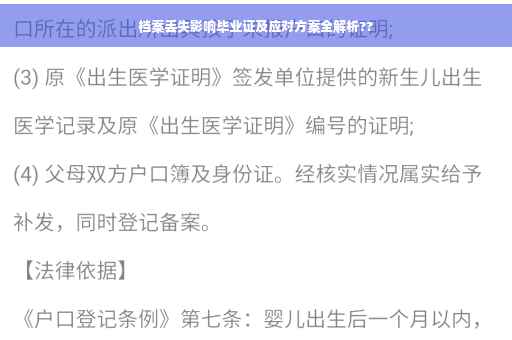 在我们的日常生活中,档案的重要性经常被忽视,很多人认为只要毕业证、学位证等重要证件在手,档案丢不丢无所谓,但事实上,档案是我们学习生涯的重要记录,一旦丢失,可能会对我们的毕业证产生影响,本文将详细探讨档案丢失对毕业证的影响以及应对措施。