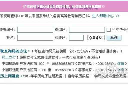 随着社会的不断发展,高等教育扩招已经成为推动教育普及化的重要手段,这也带来了一系列挑战,其中之一便是毕业证丢失的问题,毕业证是毕业生的重要身份证明和就业凭证,一旦丢失,可能会给毕业生的就业、升学等方面带来诸多困扰,本文旨在探讨扩招背景下毕业证丢失的情况,并提供相应的应对策略。
