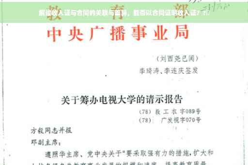 在现代社会中,随着经济的发展和人们法律意识的提高,收入证明的重要性日益凸显,无论是办理贷款、申请签证、入职手续还是其他场合,收入证明都是不可或缺的一环,而合同作为双方协商一致后达成的约定,是否可以作为收入证的证明依据呢?本文将详细解读收入证与合同的关联与差异,帮助大家更好地理解这一问题。