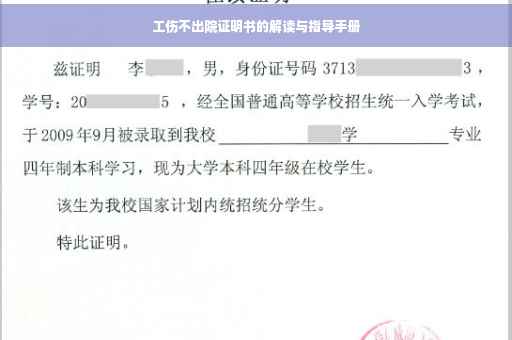 摘要:本文将详细解读和指导工伤不出院所需证明书的相关内容。首先介绍了工伤不出院证明书的含义和作用,接着详细阐述了证明书中需要包含的关键信息,如工伤发生时间、地点、伤情描述、医疗诊断等。本文还将指导读者如何准备和提交工伤不出院证明书,包括注意事项和常见问题解答。通过阅读本文,读者可以更好地了解工伤不出院证明书的申请流程和要求,以便顺利处理工伤事务。