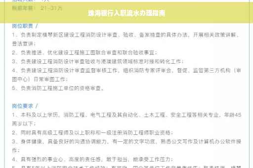 本文为您详细介绍了在珠海办理入职时,如何办理银行流水的过程,希望能够帮助您顺利入职,在办理过程中,请您务必确保提交的信息真实、准确,遵守企业要求及银行流程。