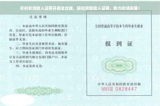 7、谨慎选择开具机构:选择正规、权威的机构开具收入证明,确保证明的权威性,农村农场收入证明的开具是办理重要事务的关键步骤,希望本文能为您带来实用的帮助,让您的农村农场事业更加顺利!