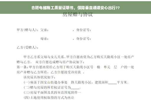 随着城市化进程的加速,电梯已成为现代城市不可或缺的重要交通工具之一,在众多的电梯项目中,合肥电梯工程以其卓越的施工质量、先进的技术水平和良好的服务口碑赢得了广大市民的信赖,本文将详细介绍合肥电梯施工的质量证明书,旨在为广大市民打造安心出行的垂直通道。