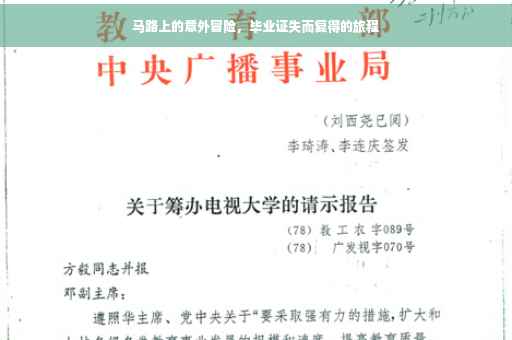 那天,我兴高采烈地走在通往学校的路上,手中拿着毕业证,心中充满了对未来的憧憬和期待,就在过马路的时候,由于分心,我没有注意到脚下的路,一不小心踩到了一个小坑里,就在身体失去平衡的瞬间,我的手一松,毕业证从手中滑落,掉在了马路上,当我回过神来,却发现毕业证已经不见了踪影。