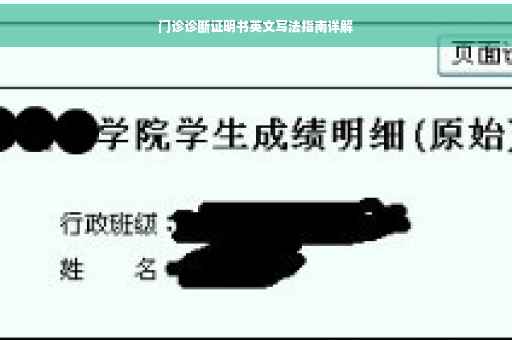 摘要:本指南提供了门诊诊断证明书的英文写法,帮助读者了解如何正确书写诊断证明书,以便在医疗实践中使用。指南详细介绍了诊断证明书的基本结构和格式,包括患者信息、诊断结果、医生建议等内容,并附有示例和注意事项。通过本指南,读者可以掌握规范的英文诊断证明书书写方法,确保信息的准确性和完整性。