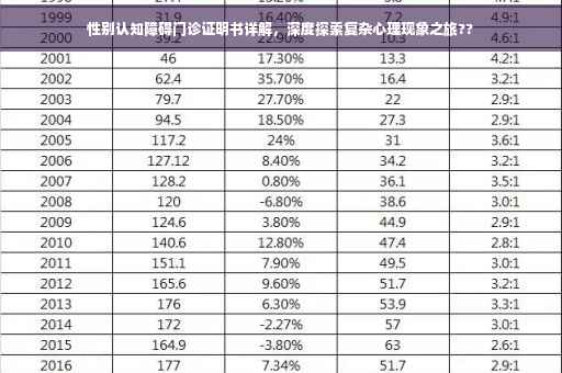 在当今社会,性别认知障碍逐渐受到人们的关注和重视,作为一种复杂的心理现象,性别认知障碍不仅影响着个体的心理健康,还对其日常生活、人际关系等方面产生深远影响,为了更好地了解这一现象,本文将详细介绍性别认知障碍门诊证明书的相关知识,帮助大家更好地认识和理解这一群体。