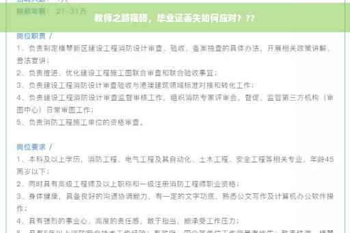 在应对毕业证丢失的问题之前,首先要清楚报考教师的资格要求,报考教师需要具备相应的学历证书、教师资格证书等,这些要求为你后续的应对措施提供了方向。