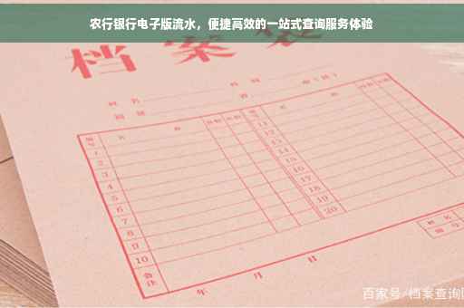 随着科技的快速发展,银行业也在不断创新服务模式,以满足客户日益增长的需求,农行银行作为国有大型商业银行,始终坚持以客户为中心,不断提升金融服务水平,农行银行电子版流水服务便是其中的一项重要创新,本文将详细介绍农行银行电子版流水的功能特点、优势以及如何便捷地获取和使用,带您感受一站式查询服务新体验。