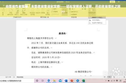 通过本文的介绍,相信你已经了解了在头条号上如何查看收入证明的全过程,从登录头条号平台到进入收益管理界面,再到查看收入证明,每一个步骤都能够帮助你更好地了解自己的收益情况,本文还提醒了你在查看收入证明时需要注意的事项,帮助你避免可能出现的问题。