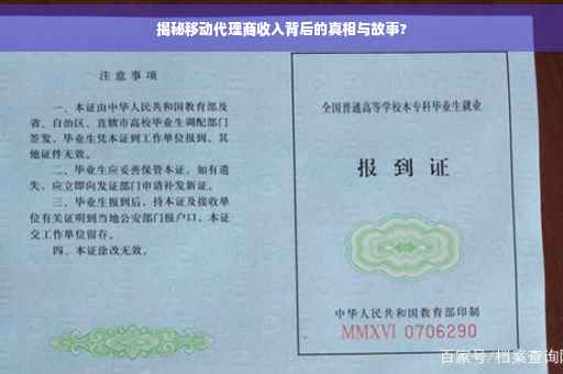 随着移动互联网的飞速进步,移动代理商这一新兴职业群体逐渐崭露头角,他们作为连接运营商与消费者之间的桥梁,通过提供移动通信服务,推动了行业的快速发展,对于许多人来说,移动代理商的收入情况是一个热门话题,他们的收入证明背后究竟隐藏着怎样的故事与真相呢?