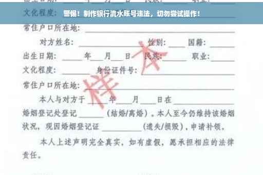 在当今社会,随着金融行业的快速发展,人们对个人财务管理的要求越来越高,在这个过程中,有些人可能会听到关于如何制作银行流水账号的方法,我要强调的是,制作银行流水账号是非法的,涉及到违法犯罪问题,任何人都不应该尝试,本文旨在向大家普及相关知识,提高法律意识,防范金融风险。