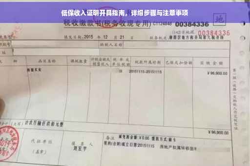 摘要:,,本文介绍了如何开具低保收入证明,包括详细步骤和注意事项。通过遵循相关机构或单位的规定,准备必要的证件和资料,填写申请表格并加盖公章,以及注意申请时限和证明真实性等事项,读者可以顺利开具低保收入证明。本文旨在帮助需要申请低保的人群了解相关流程,以便顺利获得低保资助。