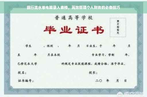 在现代社会,随着金融业务的不断发展和个人财务的日益复杂化,银行流水单已成为我们日常生活中不可或缺的一部分,银行流水单详细记录了我们的资金流动情况,对于个人财务管理至关重要,如何有效地将银行流水单录入电脑表格,以便更好地分析和管理个人财务,却是一个需要掌握的技能,本文将详细介绍银行流水单录入电脑表格的步骤、注意事项以及技巧,帮助大家高效管理个人财务。