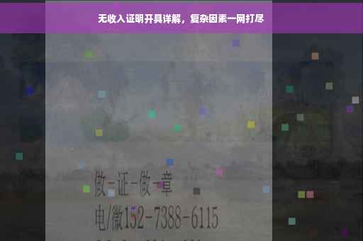 摘要:本文将探讨无收入证明的开具问题,解析其中的复杂因素。文章将简要介绍无收入证明的概念和背景,分析开具过程中的难点和挑战,包括证明的真实性、相关法规的适用性以及个人信息的核实等。通过深入了解这些要素,本文旨在帮助读者更好地应对无收入证明开具的困境,为解决相关问题提供指导。
