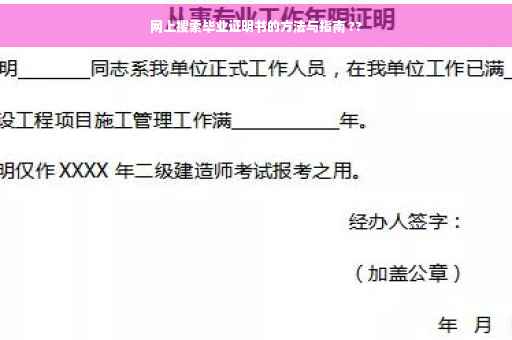 摘要:想要在网上搜索毕业证明书,可以通过各大搜索引擎输入相关关键词,如“毕业证明书搜索”、“毕业证书查询”等,结合具体毕业学校、年份、专业等信息,可以更精确地找到相关网站和资料。也可以前往学校官网或教育部门相关网站进行查询,以验证毕业证明书的真实性。