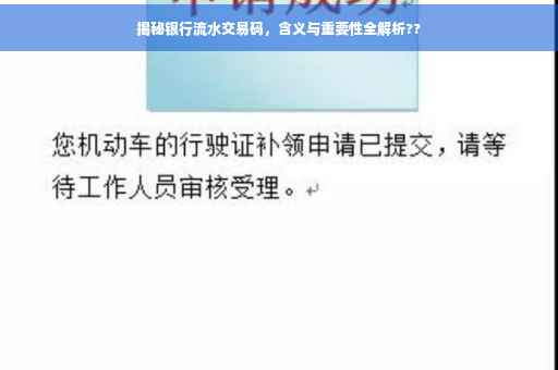 随着金融行业的迅猛发展和银行业务的广泛普及,越来越多的人开始关注银行流水交易码,许多人对银行流水交易码的概念及其重要性仍然缺乏了解,为此,本文旨在清晰阐述银行流水交易码的概念、含义及其在银行业务中的重要作用,以帮助读者更好地了解和使用银行服务。