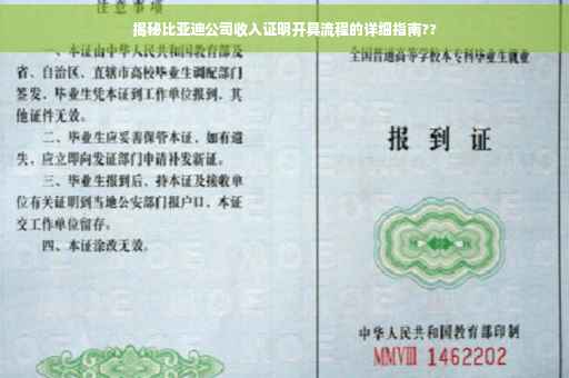 在当今社会,随着经济的飞速发展,越来越多的人开始关注个人收入证明的重要性,特别是在求职、贷款等方面,一份正规、合法的收入证明文件往往能为我们带来极大的便利,作为国内知名的汽车制造商之一,比亚迪公司(BYD Company)的广大员工及合作伙伴对其收入证明开具流程尤为关注,本文将详细介绍比亚迪公司收入证明的开具流程及相关注意事项,帮助大家更好地了解这一过程。