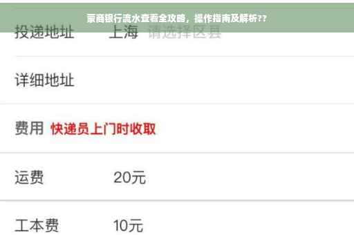 蒙商银行查看流水全解析,提供详细的操作指南。本文将指导用户如何轻松查看银行流水,包括步骤和注意事项。通过简单的操作,客户可以方便地了解自己的账户情况,包括交易记录、余额等。本文旨在帮助客户更好地管理自己的财务,提供便捷、高效的银行服务体验。